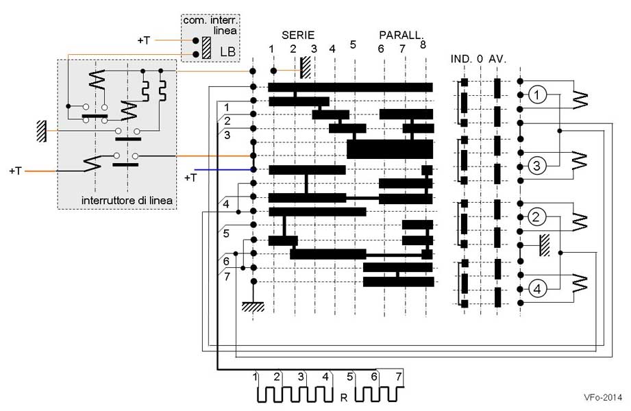per due motori tramviari, con 4 posizioni di connessione in serie dei motori