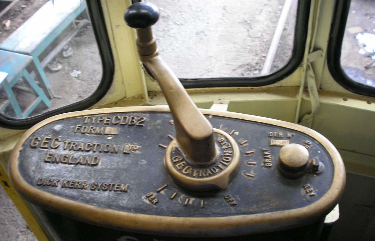Con queste manovre si viene a realizzare un circuito nel quale i due motori, con l'eccitazione invertita rispetto al senso di marcia in atto, sono posti in serie tra loro e chiusi sul reostato o in corto circuito e possono agire da generatori frenando il rotabile. Il passaggio in parallelo in frenatura è prescritto dalla SRTO si debba attuare solo in condizioni di estrema necessità, potendo dar luogo a gravi danni ai motori. Il circuito è chiaramente un ripiego per ovviare alla mancanza di predisposizione del freno elettrico sul controller e fu forse imposto da norme di legge. Tenere i due motori in serie in frenatura dà luogo ad una tensione elevata nel circuito chiuso sul reostato, che può anche raggiungere il doppio della tensione di alimentazione; se poi il conducente passa in parallelo durante la frenatura, può venire a trovarsi in una situazione di pericolo a causa dell'instabilità del circuito che si forma, equivalente a quello di due dinamo con eccitazione in serie, poste in parallelo tra loro; se una delle due macchine, come è normale, sviluppa una f.e.m. anche di poco maggiore dell'altra, ad esempio per una differenza di diametro delle ruote, si inverte il senso della corrente in quest'ultima che si eccita in senso inverso e si hanno due generatori in serie, in senso concomitante, chiusi su un circuito di resistenza ridottissima; la corrente nell'anello raggiunge rapidamente un valore elevato con sfiammate ai collettori e simili. Una modifica dei controller K10 (schema in alto, parte a destra) per semplificare il passaggio in frenatura reostatica eliminando anche il rischio di instabilità appare ben presto studiata dalla Thomson-Houston e applicata in America. Con i controller modificati, la manovra dell'interruttore A/F non è più necessaria, essendo il cilindro invertitore del controller dotato di cinque posizioni, anzichè di tre, secondo lo schema IND-FR, AV, 0, IND, AV-FR. Le posizioni AV, 0, IND sono le usuali di marcia avanti, apertura del circuito di trazione e blocco della manovella di avviamento, marcia indietro; le posizioni IND-FR e AV-FR devono essere utilizzate come segue: per frenare in marcia avanti l'invertitore deve essere posto in AV-FR, mentre per frenare in marcia indietro deve essere in IND-FR, in entrambi i casi passando poi a marcare qualche tacca in serie; le posizioni di parallelo sono bloccate. Le posizioni IND-FR e AV-FR sostituiscono l'interruttore A/F, che però resta presente e serve solo per isolare il circuito di trazione. Nel controller K10, per escludere dal servizio un motore, occorre aprire la cassa del controller onde accedere a due commutatori a coltello a due posizioni, ad azionamento verticale, l'uno bipolare per l'esclusione del motore 1 o A, l'altro unipolare per il motore 2 o B; i due commutatori si trovano nella parte bassa del controller, verso sinistra. La normale posizione di marcia con entrambi i motori in funzione corrisponde ai due commutatori in posizione bassa, mentre portandoli in alto uno alla volta si ottiene l'esclusione del corrispondente motore. Con uno dei motori escluso il controller è meccanicamente bloccato sulle sole posizioni di serie. Controller General Electric K36 E' il controller utilizzato dalle motrici STFER a due assi dei gruppi 7 e 40.