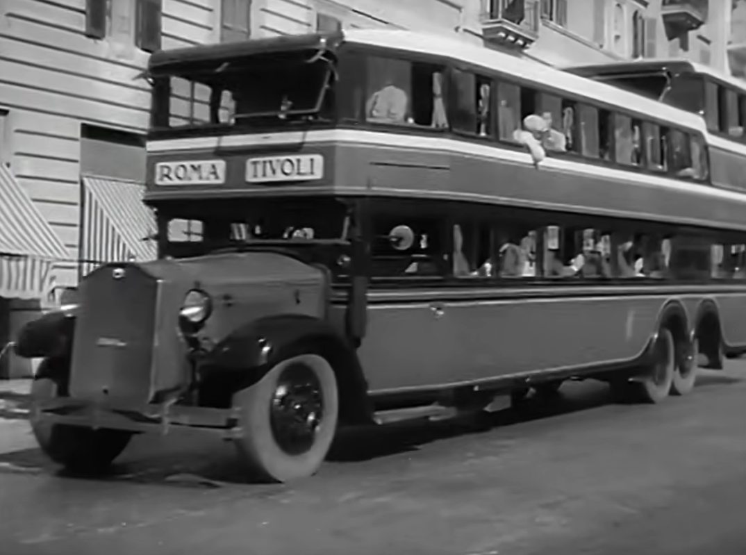 | Autobus 3219, Alfa Romeo 110 a tre assi del 1935, all'epoca con 19 anni di servizio. La tabellazione 190 è del tutto inventata; all'epoca non esisteva una linea con tale denominazione. Le riprese sono di via Prenestina e della Borgata Gordiani. Si vedono inoltre un Fiat 656 a due assi (la tabellazione 312 è corretta per la zona di ripresa) e un tram otto finestrini in via Sessoriana, lungo un anello utilizzato per limitazioni estemporanee delle linee che transitavano per via S. Croce in Gerusalemme (la vettura è stata tabellata 12 forse perché la trama prevede le scene seguenti a Gordiani). | ||||