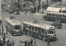 L'anno passa con poche e piccole variazioni di itinerario per alcune linee centrali: 75 e 75 barrato sono istradate su un anello terminale da piazza Rosolino Pilo; la linea 56 lascia l'instradamento per via Salaria, piazza Fiume, via Calabria e via Boncompagni per passare in via Po, via Romagna e via Boncompagni (11 maggio). Le prime sostituzioni con autobus Il riordino della numerazione delle linee assegna la metà dei numeri alle linee filoviarie. Se ne deduce che ancora nel 1951 l'ATAC continua a portare avanti il programma di estensione messo a punto per la nuova rete del 1942 e rimasto sulla carta a causa della guerra. Il filobus è ancora considerato un valido mezzo di trasporto, specie sui percorsi caratterizzati da forti pendenze, ma già dal 1952 iniziano a mostrarsi i primi sintomi di una inversione di tendenza. La causa di questo fenomeno va ricercata in due fatti concomitanti: il traffico automobilistico sempre più intenso e caotico e alcune caratteristiche negative del veicolo filoviario. Al filobus si rimprovera la scarsa maneggevolezza, ed in effetti il veicolo filoviario mantiene negli anni Cinquanta le stesse identiche caratteristiche con le quali è nato nei primi anni Trenta. Anzitutto le dimensioni; il parco ATAC è in gran parte costituito da veicoli a tre assi lunghi quasi 12 metri, che pesano mediamente 11 tonnellate, e la manovra dello sterzoi richiede braccia ben più chje robuste ai conducenti, non essendo ancora entrato in uso il servosterzo. Una buona metà delle vetture, inoltre, è dotata di due motori con l’usuale avviamento reostatico e il loro accoppiamento in serie e in parallelo, il tutto ottenuto a mezzo di un avviatore automatico eguale a quello utilizzato sui tram, col quale il conducente ha la sola possibilità di stabilire un paio di posizioni di marcia dopo l’avviamento. E’ chiaro che, con tale sistema, la marcia nel traffico cittadino deve necessariamente ottenersi a mezzo di continue manovre di attacco e stacco, estenuanti per il conducente e per i passeggeri e deleterie per i gruppi meccanci. Anche se alcuni costruttori hanno già da prima della guerra introdotto equipaggiamenti semplificati e dotati di possibilità di avviamento non automatico le caratteristiche del filobus, che ne hanno decretato il successo negli anni '30, diventano deleterie quando ai veicoli viene chiesto di affrontare strade sempre più congestionate. Questo tipo di apparato elettrico, del resto, è anche l’unico possibile per la tecnologia dell’epoca, ed anche i numerosi ritrovati più volte sperimentati dall'ATAC e da altre aziende non approdano in pratica a nulla. Il personale di guida comincia quindi a chiedere sempre più insistentemente la sostituzione dell’autobus al filobus sulle linee che interessano il centro storico: gli autobus che entrano in servizio al momento, primi fra tutti i Fiat 680 e i Lancia Esatau, ma soprattutto i successivi Fiat 405, sono molto più pratici e maneggevoli, ben diversi dai mezzi di produzione anteguerra, dalle piccole e scomode vetturette Lancia Omicron ai mastodontici e pesanti Alfa 80, 110. La richiesta dei conducenti è sostenuta anche dagli enti capitolini preposti al traffico, che nella presenza del bifilare trovano un ostacolo alle variazioni nella circolazione stradale, e già dal 1951 l’ATAC ha iniziato a sostituire gli autobus ai filobus su alcune linee come il 66, il 70, il 77 e il 78, ufficialmente per permettere deviazioni provvisorie a causa di lavori stradali, nella realtà per avviare una sperimentazione in vista delle definitiva sostituzione. |