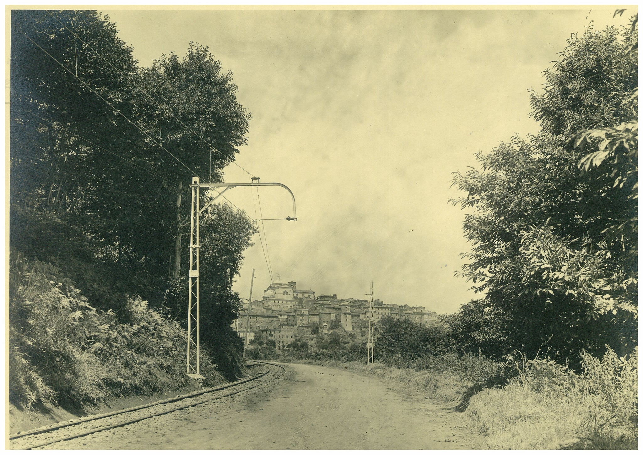 Fiuggi fonte-Fiuggi città Nella configurazione iniziale della linea (concessione del 1910) dalla stazione di fronte all'ingresso delle terme di Fiuggi viene prevista la sola diramazione verso l'abitato di Anticoli di Campagna (Fiuggi dal 1909). Durante i lavori di costruzione della linea viene inaugurato un secondo ingresso alle fonti e subito si pensa ad una seconda diramazione che lo colleghi. Il collegamento per la città è attivato col secondo tronco della linea Genazzano-Fiuggi (1917) , la tratta verso la fonte è attivata nel 1919. Il servizio locale è esercitato con corse dirette dalla fonte alla città, che transitano su un apposito binario esterno alla stazione di Fiuggi centro, e corse limitate dai due estremi alla stazione centrale e si mantiene redditizio fino a tutta la seconda guerra mondiale. Negli anni '50 inizia una deleteria concorrenza delle autolinee private che ne riduce l'appetibilità. Il tronco per la fonte è sospeso nel 1959, l'intero servizio locale dal 1 luglio 1960. |