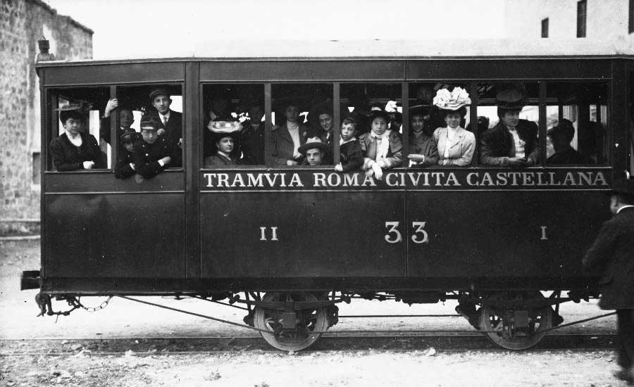 Il materiale di cui in a) comprende anche alcune locomotive a vapore. Materiale motore Locomotive a vapore Per i servizi di manovra sui raccordi e per qualche treno viaggiatori o merci la linea disponeva di alcune macchine a vapore, inizialmente utilizzate per la costruzione. I dati ufficiali parlano di cinque locomotive, ma solo di tre di esse si hanno notizie: una macchina a due assi, la Maria Antonietta e due a tre assi, Jeanne e Roma. Da altra fonte si sarebbero avute due macchine da 24 CV e una da 125 CV. Una macchina a tre assi fu usata nel 1924 per un esperimento di trazione ad aria compressa sistema Zarlatti. Elettromotrici a due assi (prima fornitura) Prima serie di elettromotrici entrate in servizio sulla tramvia per Civitacastellana nel 1906 ed utilizzate anche per qualche servizio locale, ad es. in Roma tra p. della Libertà e v.le del Lazio: