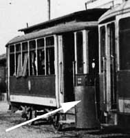 | Non tutti i rotabili sono dotati di occhiello e verga; il sistema resta parzialmente in funzione fino al 1936 circa, quando motrici e rimorchi sono di nuovo modificati montando una usuale presa, la stessa precedentemente sostituita da occhiello o verga. Nel dopoguerra, completandosi la trasformazione della maggior parte dei rimorchi in unidirezionali, questi perdono la presa, sostituita da un cavetto fisso uscente da un foro e terminante con la spina per l'inserzione nella presa della motrice. | ||||||