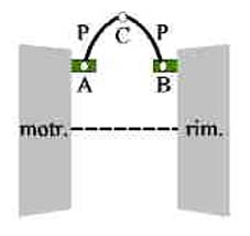 protezione col bandone In molte immagini di treni di motrice e rimorchio si nota un elemento aggiunto esternamente tra motrice e rimorchio, che ha l'aspetto di due pezzi di bandone collegati tra loro a cerniera. E' una specie di protezione, si suppone di invenzione ATM o ATAG, che dovrebbe evitare che un passeggero, malamente aggrappatosi ai mancorrenti della porta posteriore della motrice, perdendo l'equilibrio possa finire sotto le ruote del rimorchio. Dovrebbe altresi impedire che ci si possa intrufolare tra motrice e rimorchio per non girare attorno al convoglio. Quante volte il dispositivo in questione abbia salvato la vita a un passeggero, non è noto. In ogni caso, lo schizzo sottoriportato ne indica la disposizione schematica (vista dall'alto): P sono le due lamiere opportunamente sagomate, incernierate in A, B, C tra la motrice e la rimorchiata; le cerniere A e B sono realizzate mediante ferri ad U montate sui frontali dei rotabili. |