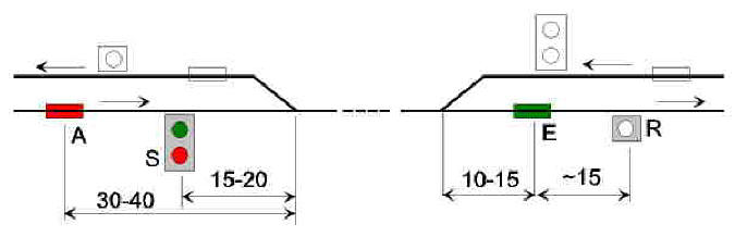 sosta per la partenza, ad una distanza dello scambio d’uscita dal deviatoio tale da