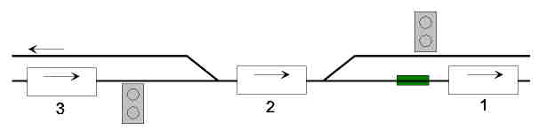 - che la via è impegnata da un treno che lo precede nello stesso senso,