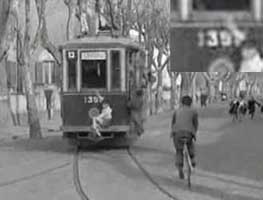 | Nel film "Il mondo le condanna", uscito nel 1952, appare una vettura tranviaria ex SRTO. La scena è girata sull'anello capolinea del mattatoio, in fondo a via Galvani, e il tram è taroccato con simboli e diciture fiorentine (il film è ambientato a Firenze). La definiamo doppia perché da una parte è numerata 1359 e dall'altra 1357. In realtà la 1359 risulta già esistente, essendo una Ringhoffer della SRTO, passata alla ATM e ricostruita come rinnovata, ed è del tutto diversa dalla vettura del film, altro non fosse perché la 1359 manteneva il lucernario. | ||||||||||||||||||||||||||||||||||||||||||||||||||||||||||||||||||||||||||||||||