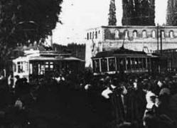 Traffico tramviario di fronte al Verano; si notano le motrici TFE.